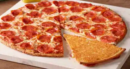 Classic pepperoni pizza topped with melted cheese and crispy, savory pepperoni slices.